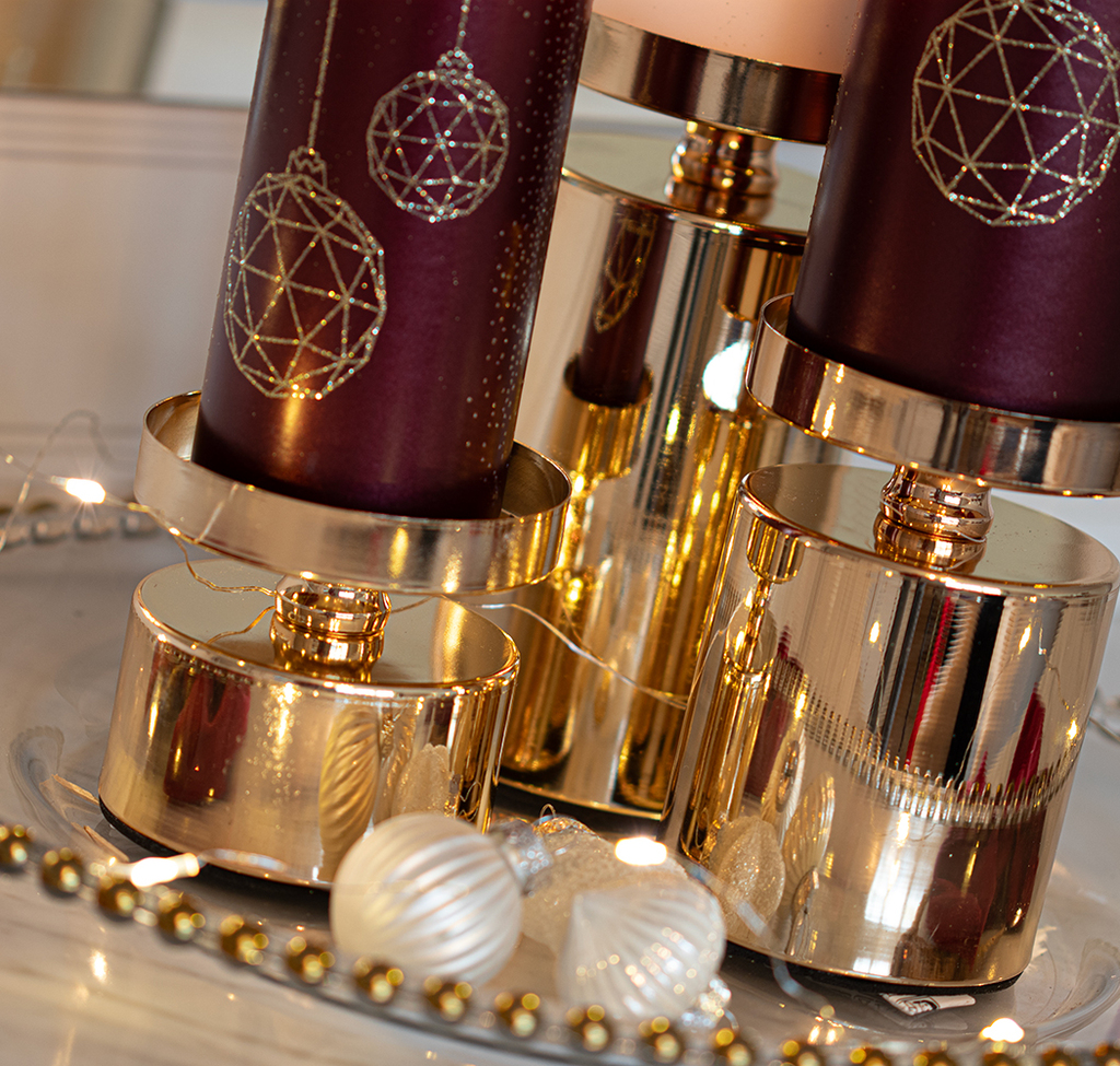 Když se jeho zlatý povrch setká s plamínkem, prostor se rozzáří tichým teplem. Malý svícen přináší nenápadné světlo, které se jemně rozprostře po místnosti, jako první šepot blížících se Vánoc.