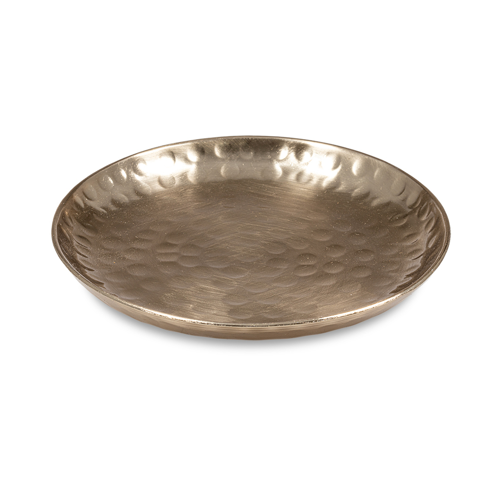 Jemný a zároveň výrazný detail pro váš domov. Tento větší kulatý tácek v luxusním zlatém odstínu má hladký povrch, který je doplněn decentním tečkovaným reliéfem v celé ploše.