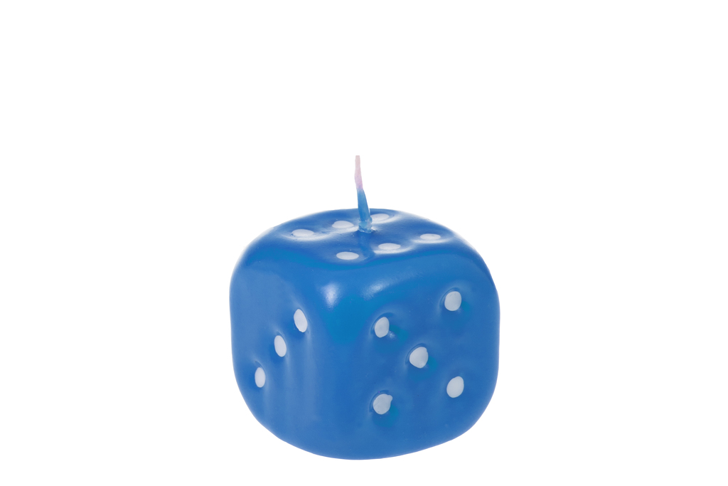 This candle comes in the shape of a dice, in one size but various different colours.