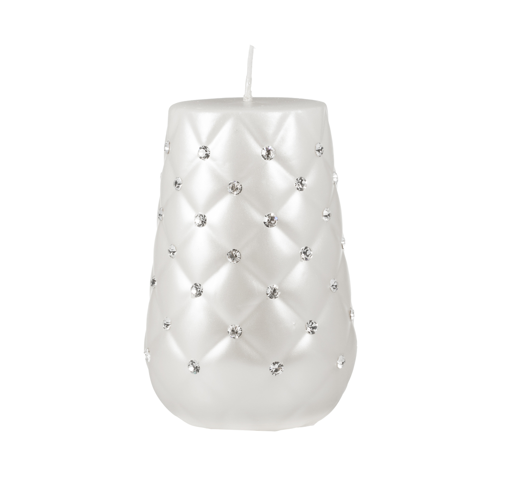 Elegantní bílá diamantová svíčka, lakovaná a ručně zdobená s PRECIOSA kamínky, Doba hoření 48 h.