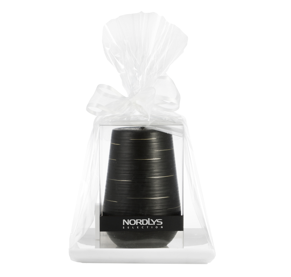 Součástí dárkového balíčku je svíčka ze skandinávské kolekce Steep Line v černé barvě (Cone 80-120 mm), keramická podložka bílé barvy, zápalky