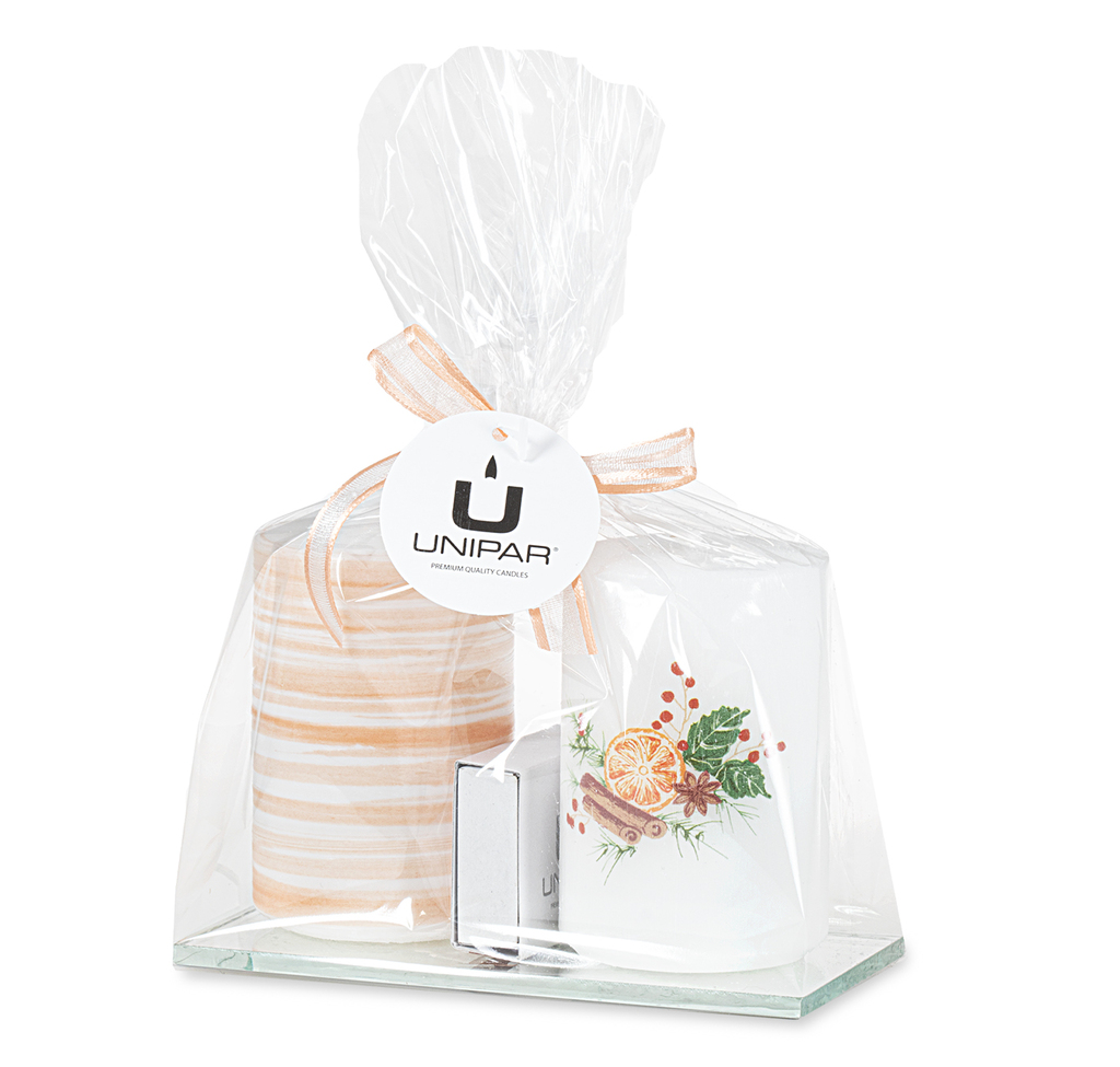 Dárkový balíček dvou svíček z různých kolekcí.