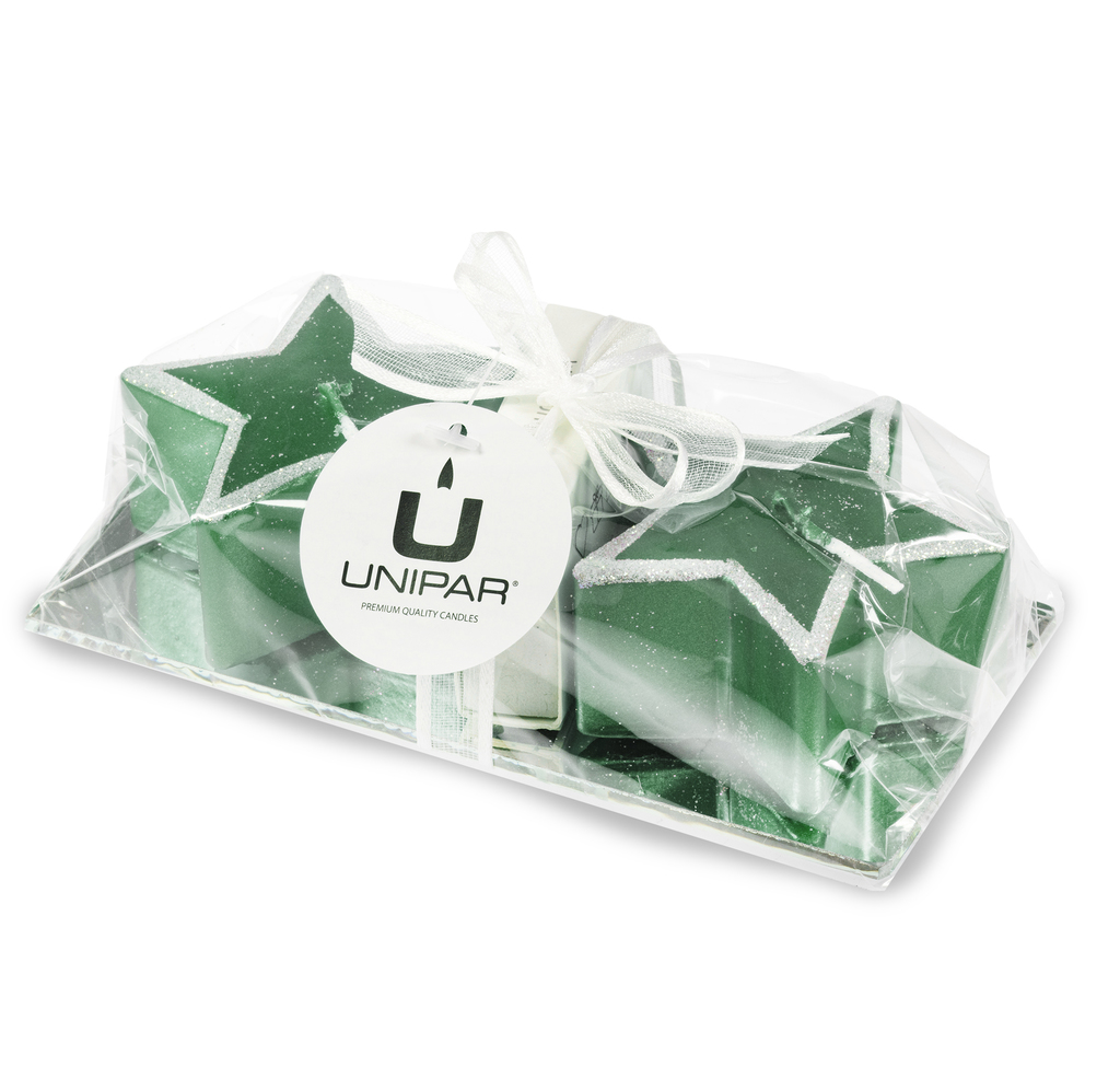 Nechejte se okouzlit třpytivou září hvězd...krásný doplněk nejen na vánoční stůl. Balíček obsahuje dvě svíčky ve tvaru hvězdy (60-30 mm) v různých metalízových odstínech, která může plavat na vodní hladině a zápalky.