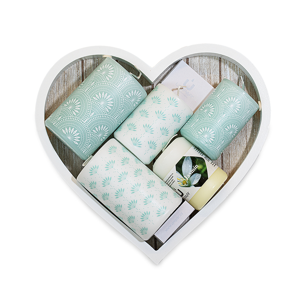 Pro zvýraznění romantického ducha tohoto balíčku jsme přidali dřevěný dekorační podnos ve tvaru srdce. Tento podnos bude dokonalým doplňkem do vaší dekorace a dodá vášmu prostoru kouzelný nádech lásky.