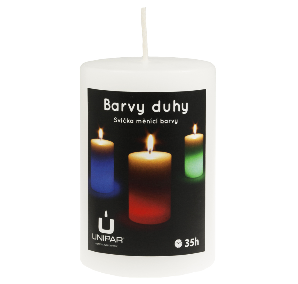 Po zapálení svíčka svítí a mění barvy