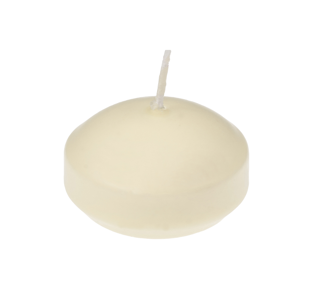 Plovoucí svíčka je ve tvaru malé čočky, využít lze do menších skleněných mís s vodou.