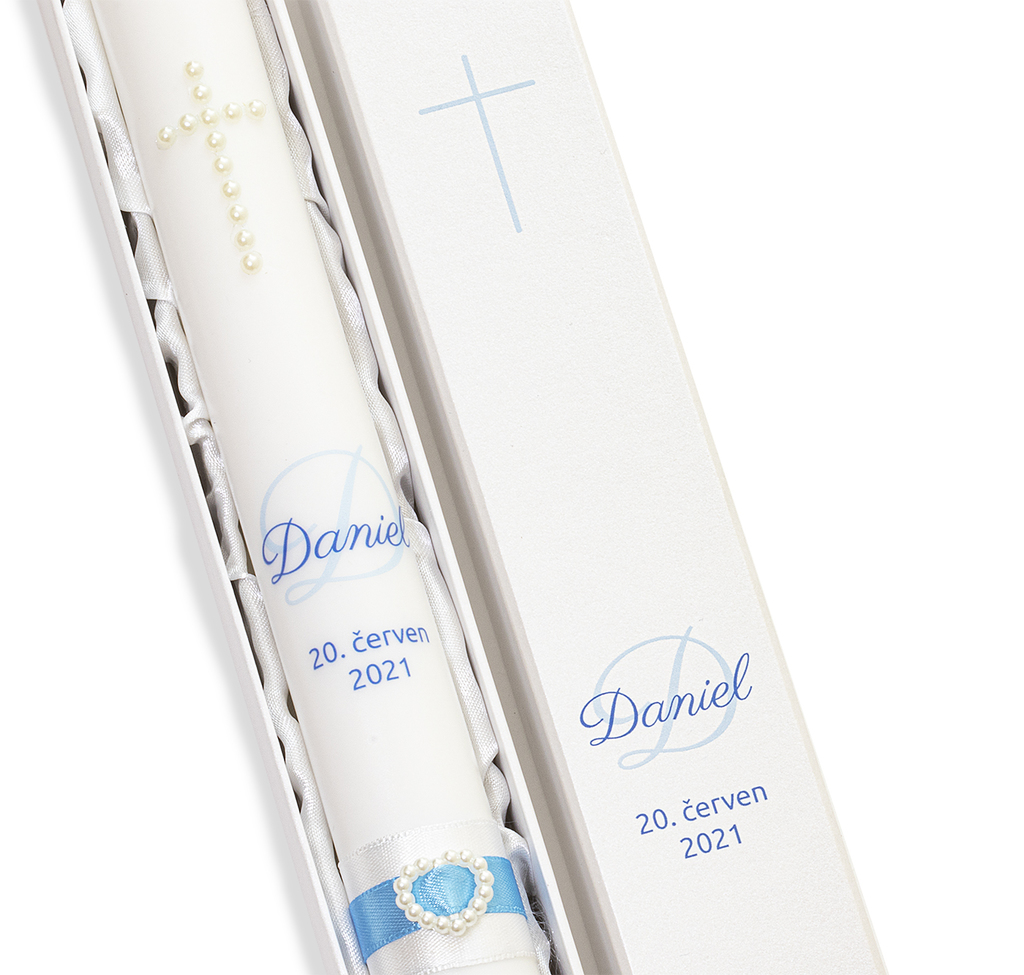Součástí svíčky je také dárková krabička, která bude včetně jména a zdobení.