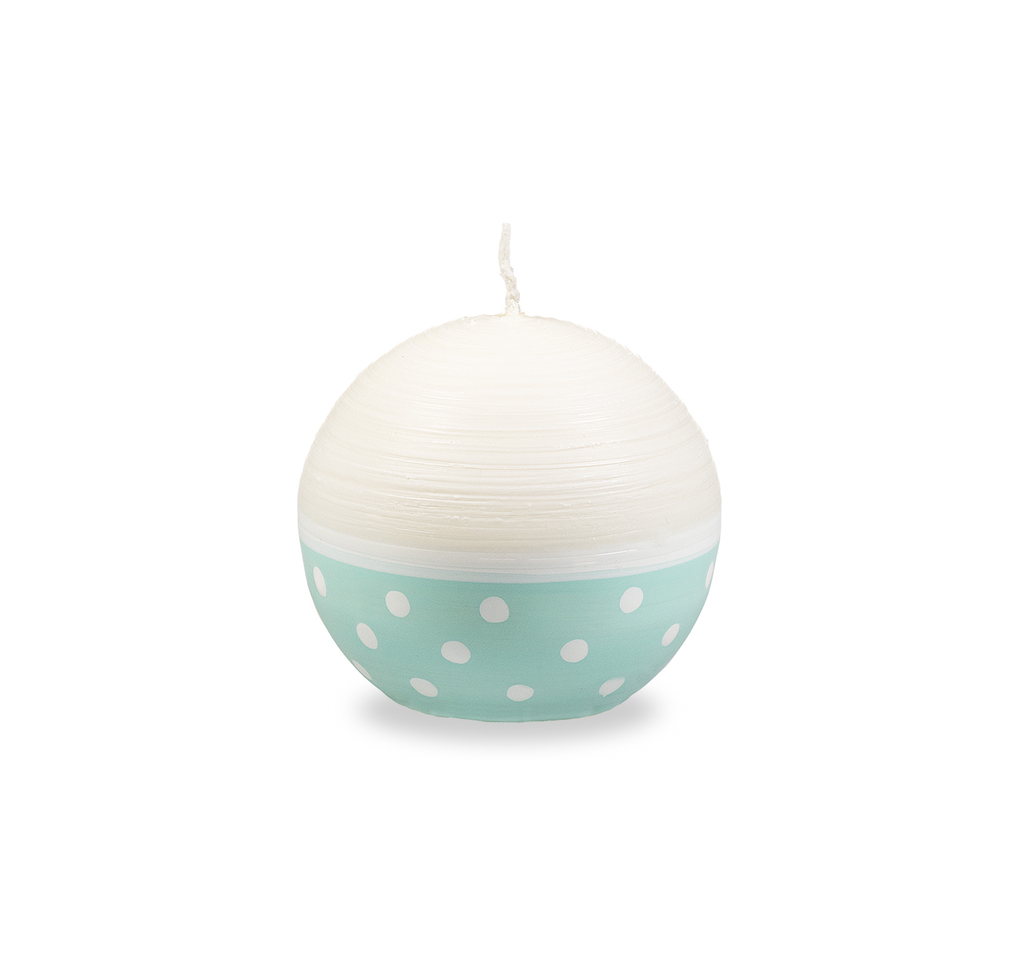 Krémovo-tyrkysová svíčka v kulatém tvaru vám opravdu rozzáří oči svou hravostí a dokonalostí.