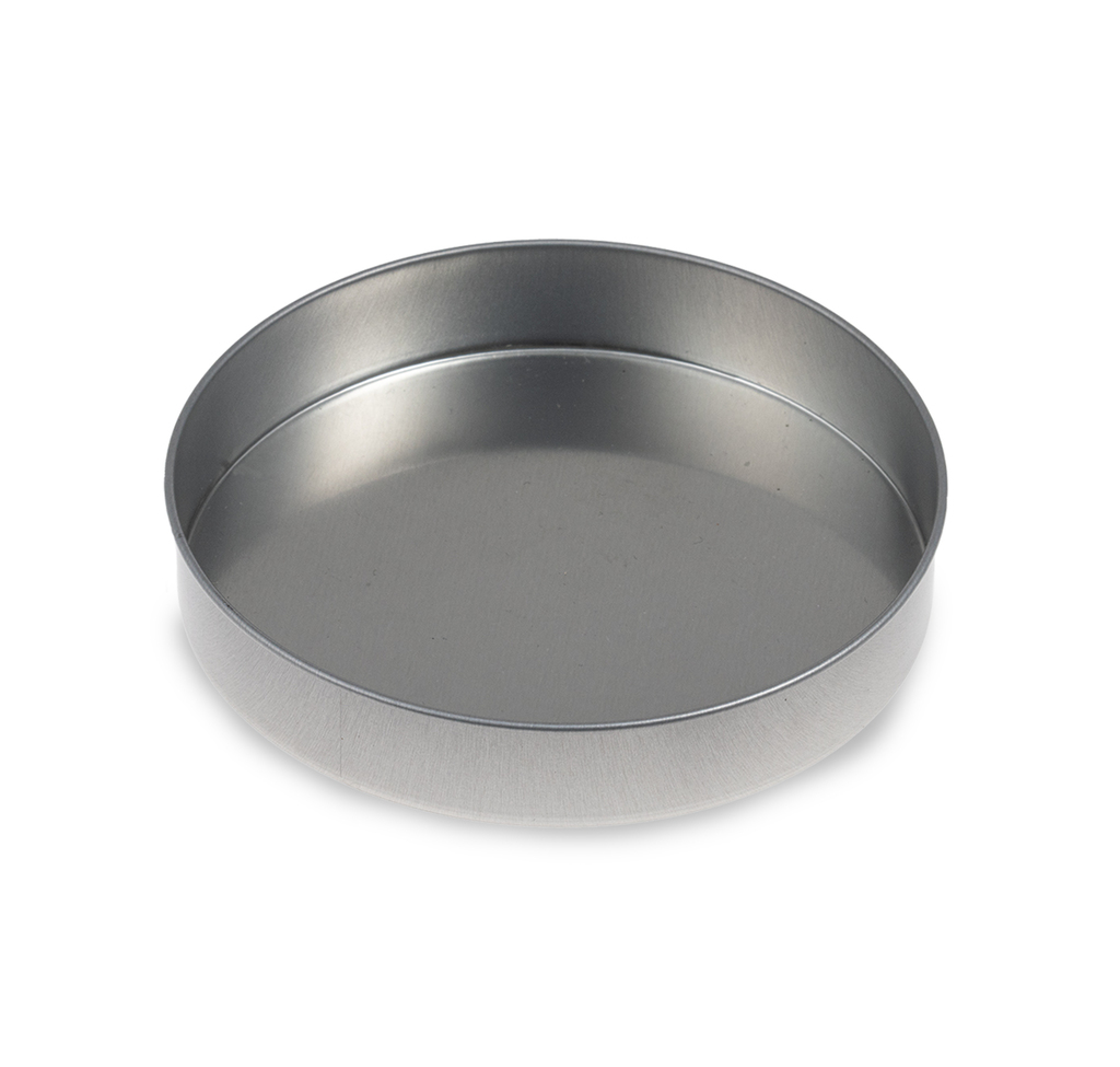 Kulatá bezpečnostní plechová stříbrná podložka s průměrem 10 cm určená hlavně pro venkovní svíčky o rozměru 100-90 mm a 100-60 mm.