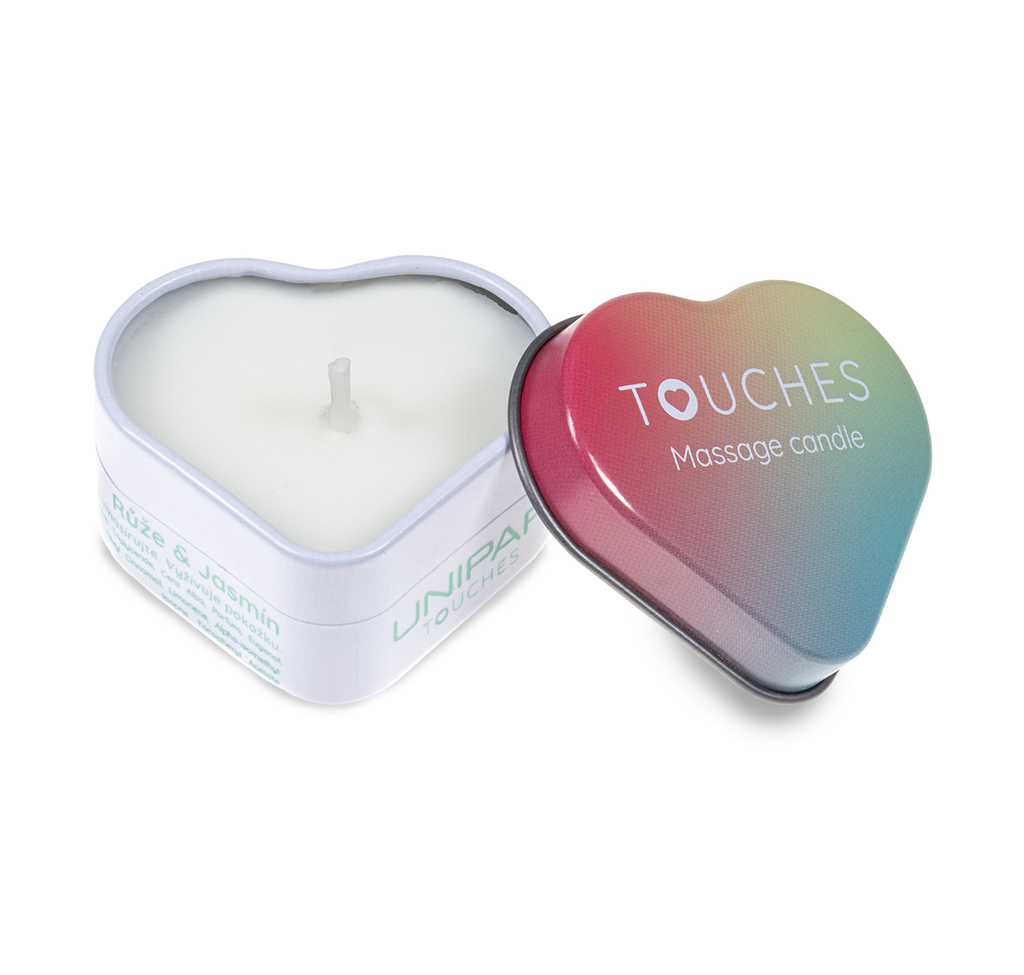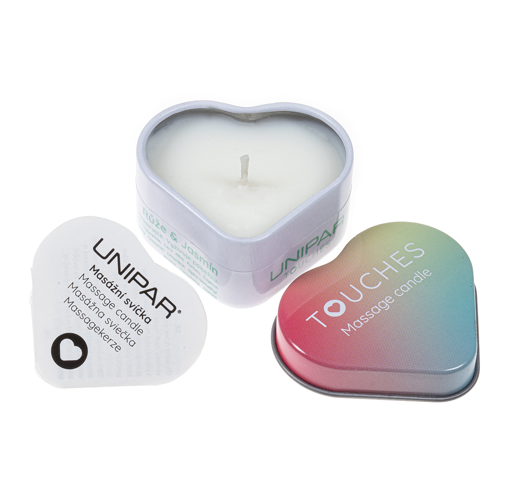 Tato masážní svíčka v plechovém srdíčku s vůní jasmínu a černé růže je směs kokosového oleje a bambuckého másla, doplněná o vitamín E. Zahřáté ingredience působí jemně, ale intenzivně na Vaše tělo a příjemná teplota se udržuje po delší dobu masáže.