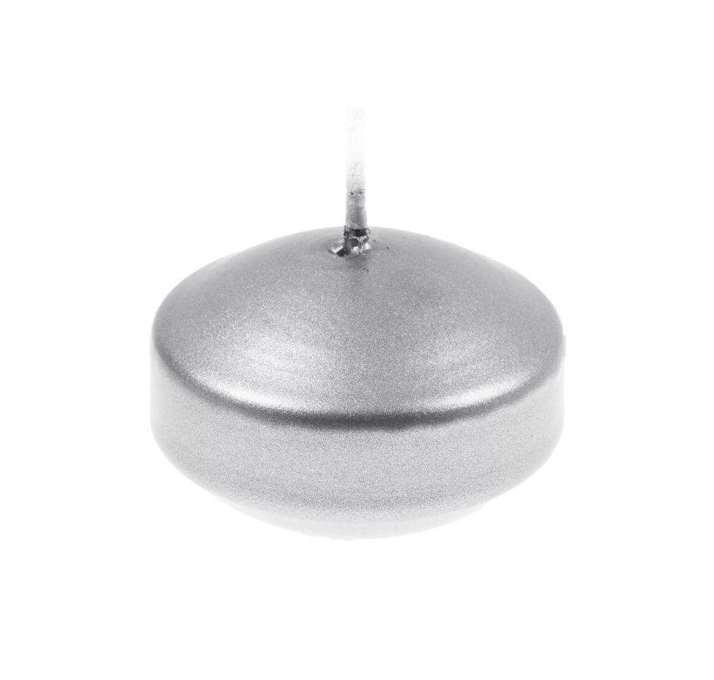 Plovoucí svíčka je ve tvaru malé čočky s metalickým povrchem, využít lze do menších skleněných mís s vodou.