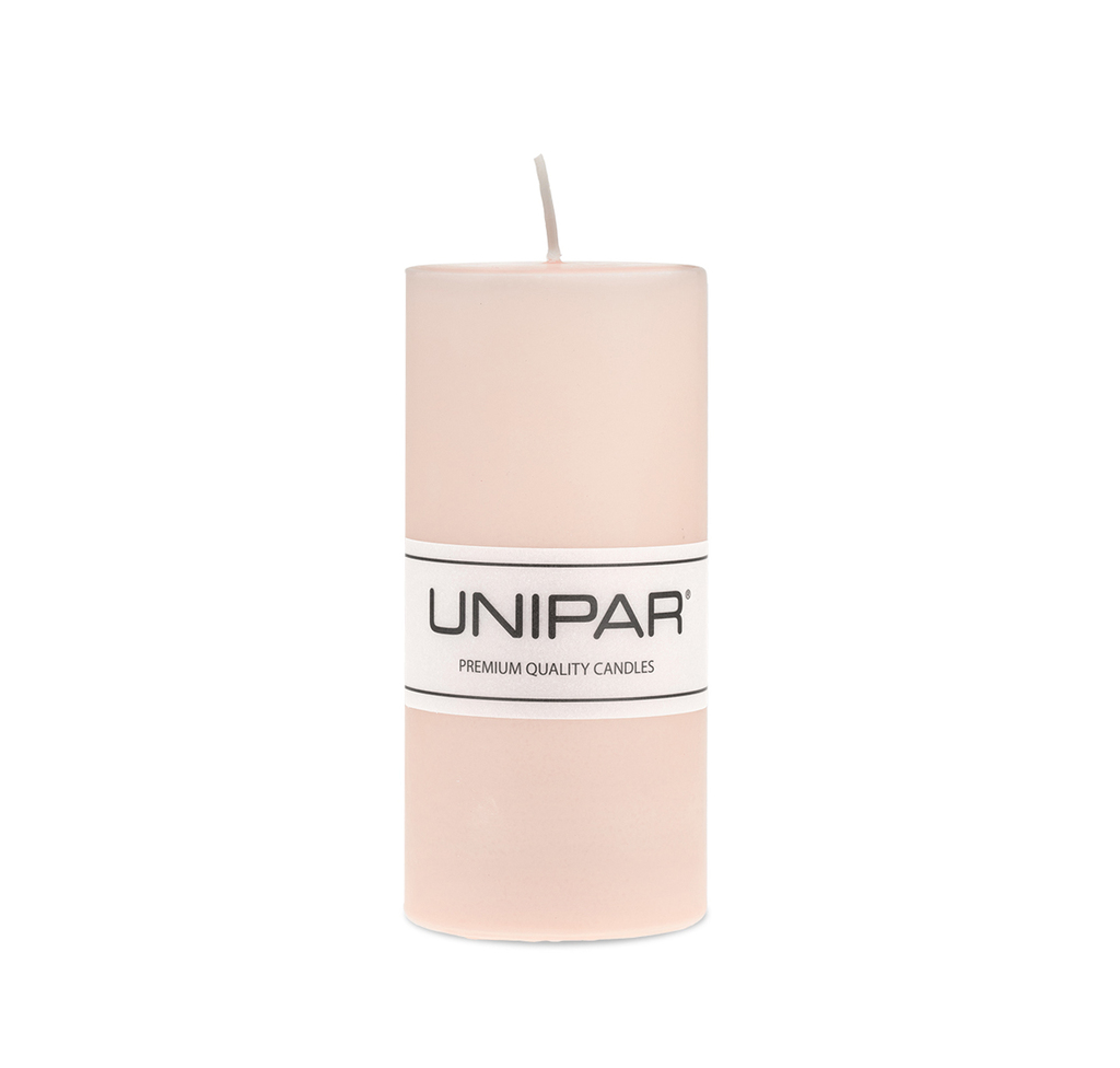 Světle růžová válcová svíčka o velikosti 7x15 cm v jednoduchém skandinávském stylu, která se bude hodit do různých svícnů a luceren (se správnou cirkulací vzduchu), na adventní věnce nebo jako samotná dekorace do vašeho interiéru.