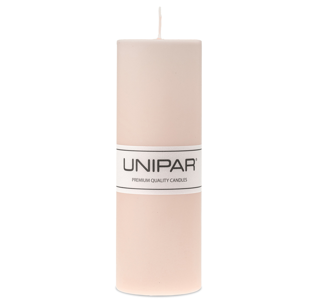 Světle růžová válcová svíčka o velikosti 7x20 cm v jednoduchém skandinávském stylu, která se bude hodit do různých svícnů a luceren (se správnou cirkulací vzduchu), na adventní věnce nebo jako samotná dekorace do vašeho interiéru.