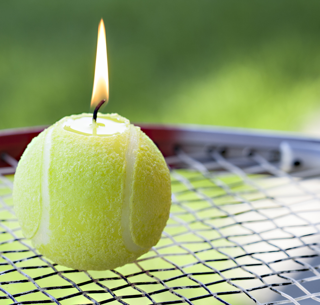Design svíčky vychází z přesného tvaru tenisového míčku.