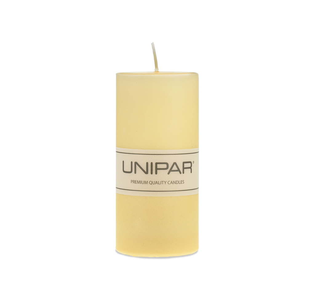 Válcová svíčka ve světle žluté barvě o velikosti 7x15 cm v jednoduchém skandinávském stylu, která se bude hodit do různých svícnů a luceren (se správnou cirkulací vzduchu), na adventní věnce nebo jako samotná dekorace do vašeho interiéru.