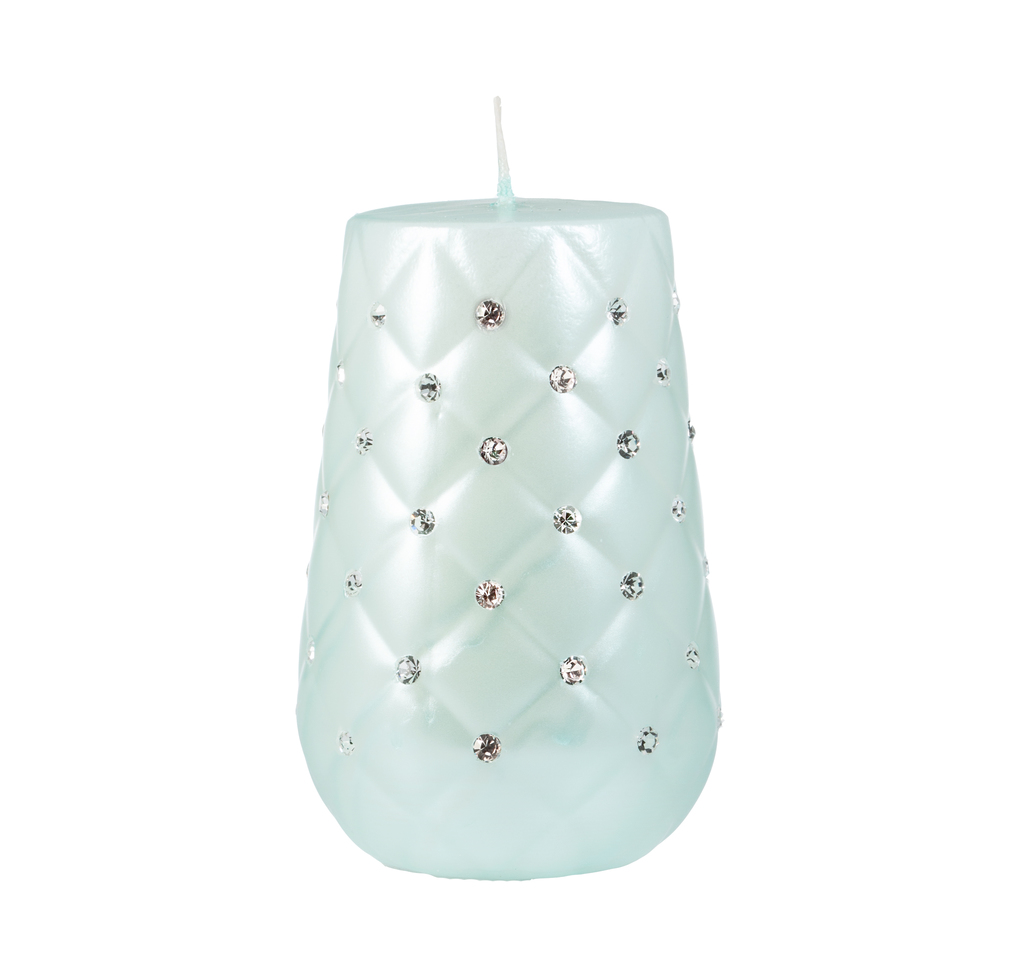 Diamantová svíčka v tyrkysové metalické barvě ručně zdobená kamínky Preciosa.