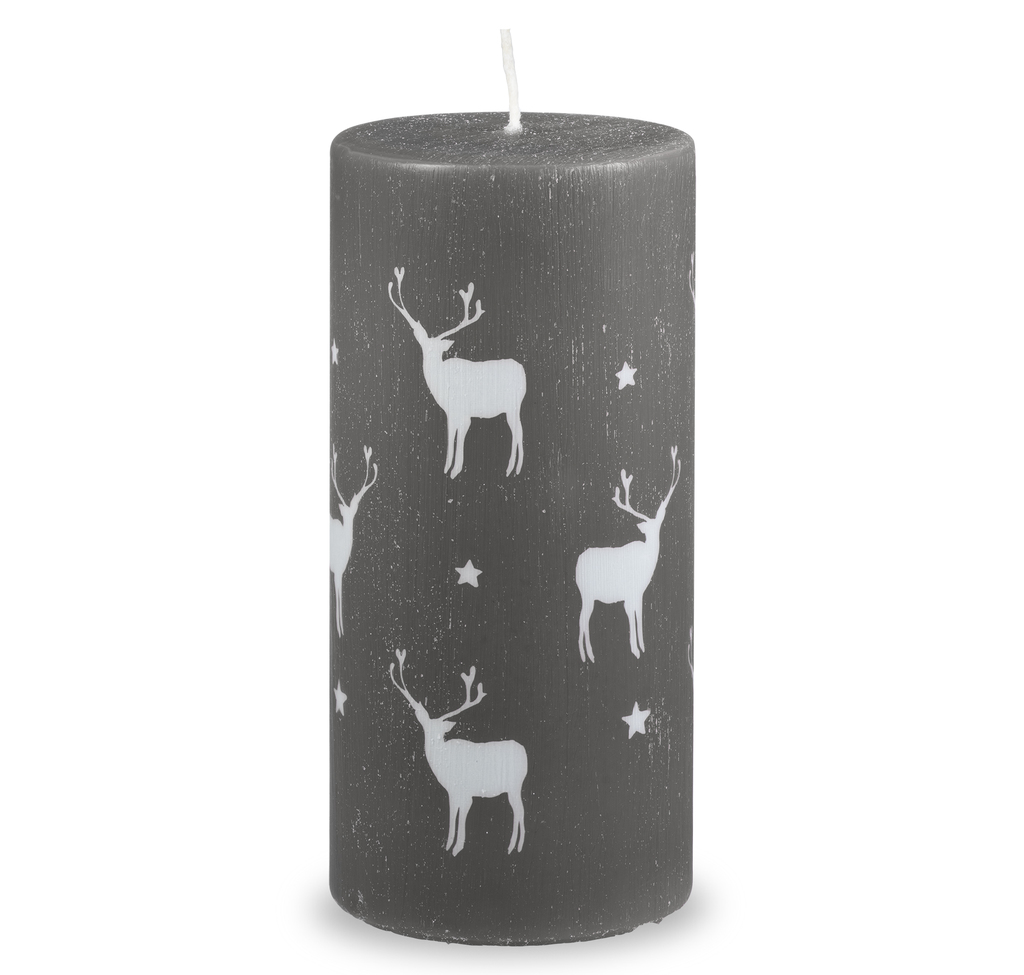 Svíčka z vánoční edice s motivem bílých jelenů a hvězdiček v šedé barvě. Nová kolekce je inspirovaná jednoduchým severským designem.